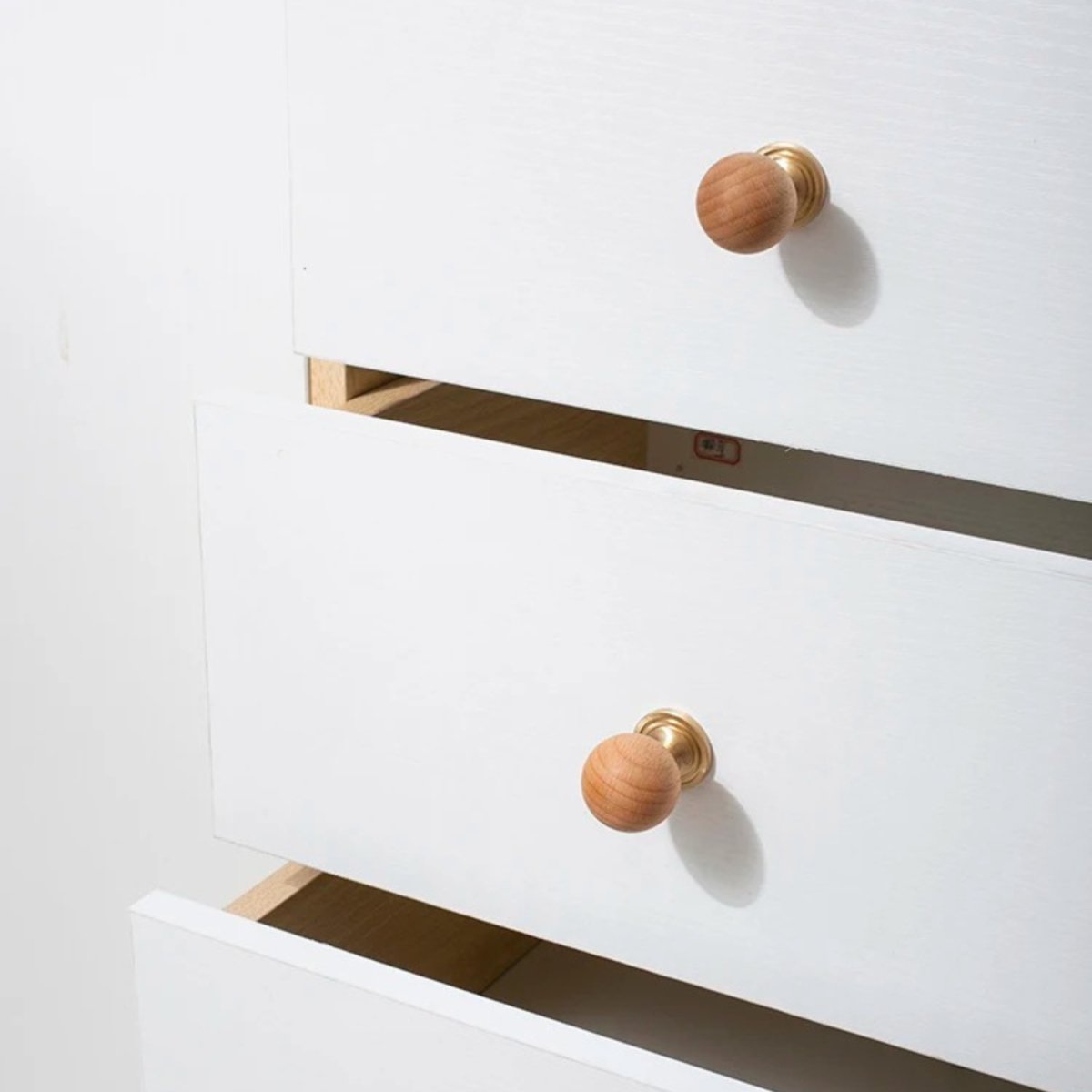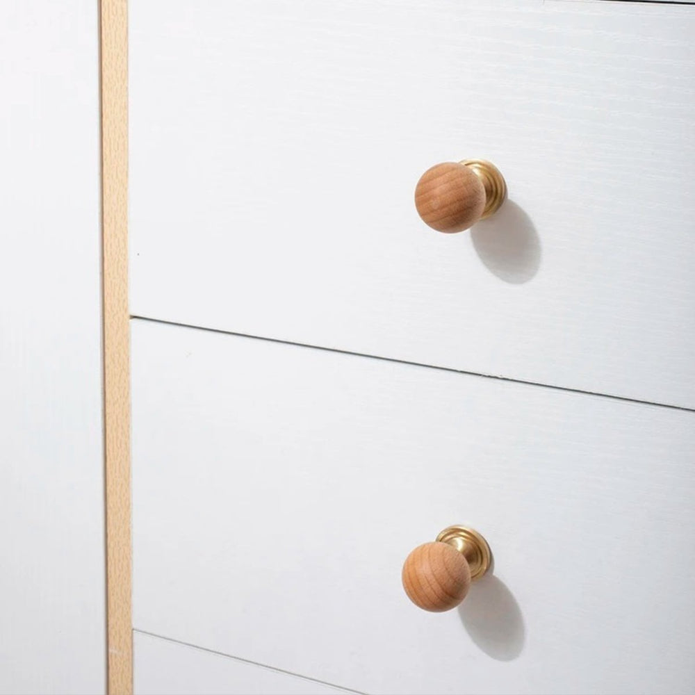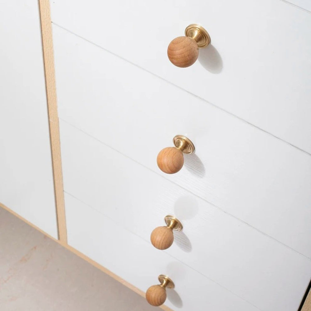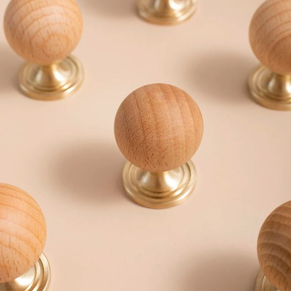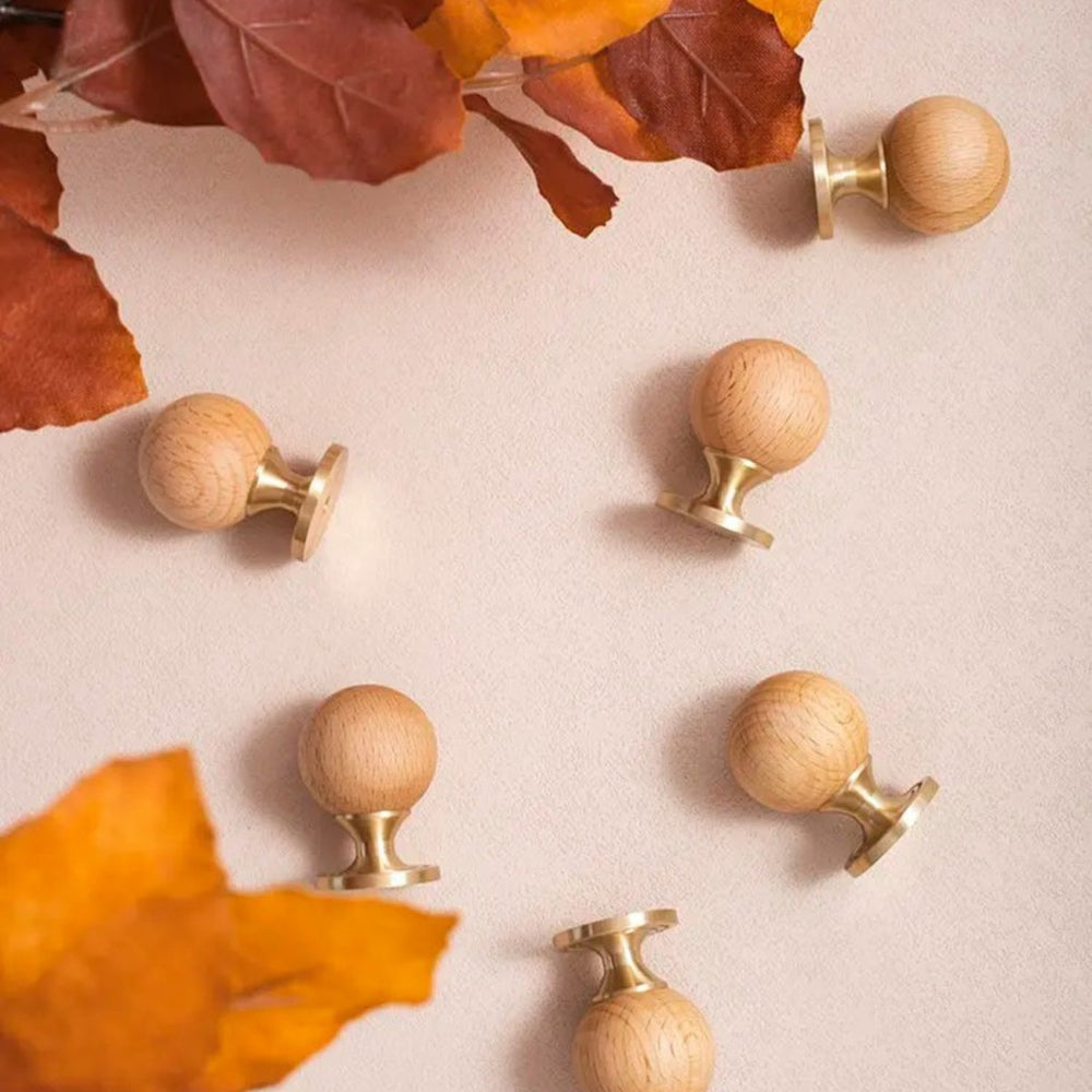 The timeless design, featuring a warm wood ball and elegant brass, adds a touch of sophistication to any wardrobe or drawer. With its single-hole circular design, installation is a breeze, and the small knob ensures both style and practicality.