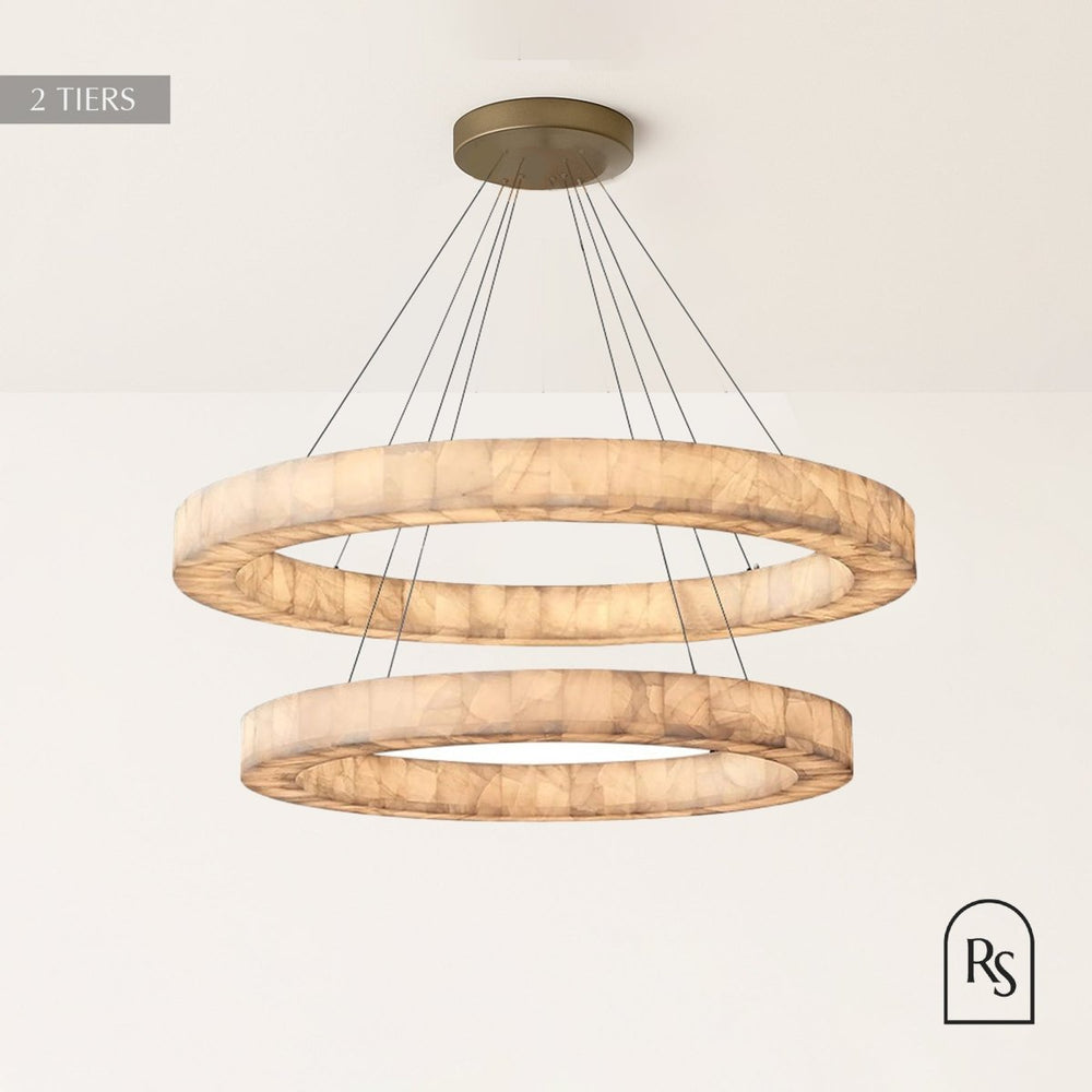 The Teva Round Chandelier creates a warm and inviting ambiance, thanks to its use of calcite stone that glows softly with natural warmth. The subtle internal lighting accentuates the organic colors and textures of the stone, making each piece a unique decorative statement. This chandelier seamlessly blends stone and metal, exuding elegance and craftsmanship, and is perfect for adding a touch of natural allure to various room settings. For more details, please refer to our website: https://residencesupply.com/.