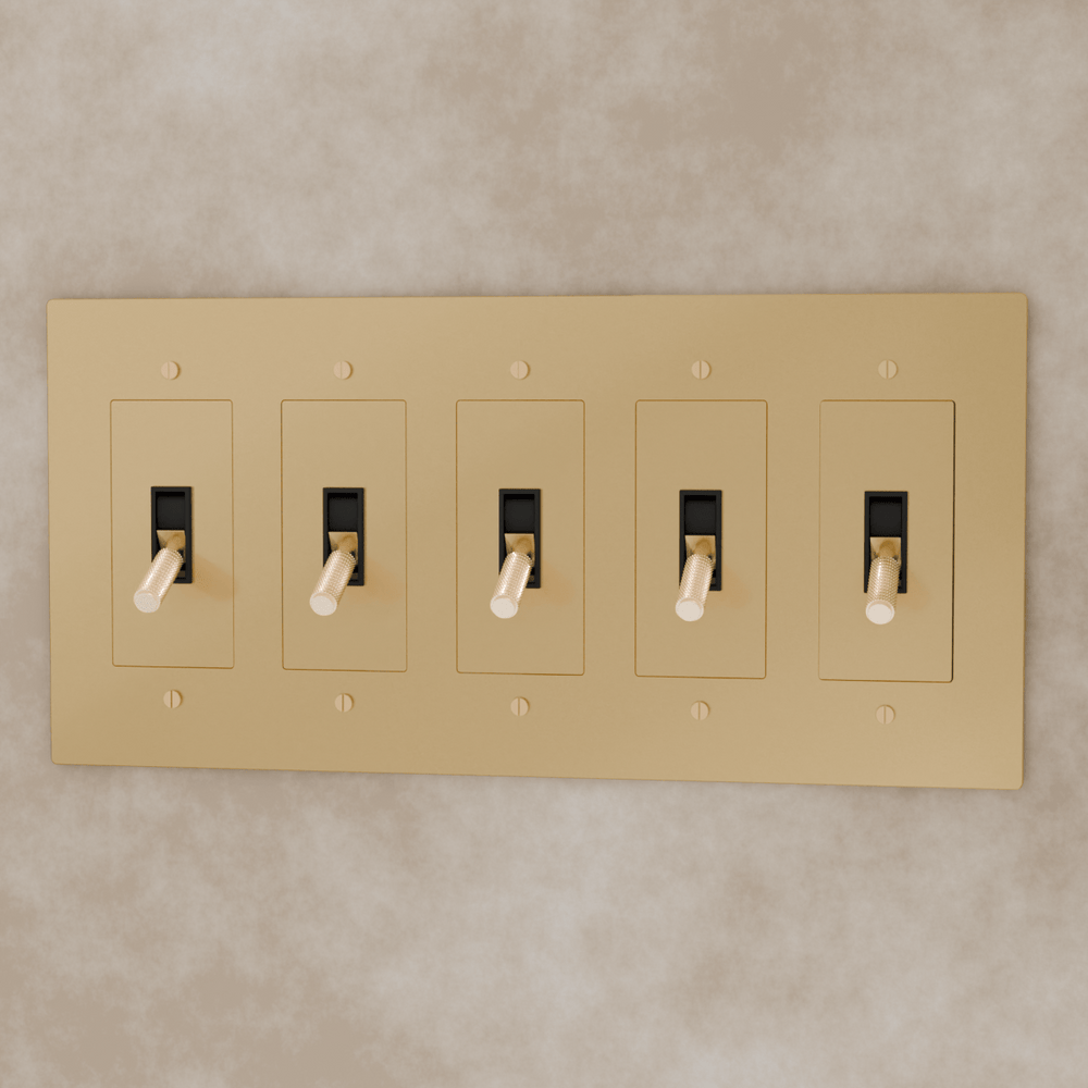 Solid brass toggle switch delivers substantial weight, precise tactile feedback, and natural antimicrobial protection; perfect for enhancing any room with enduring quality.