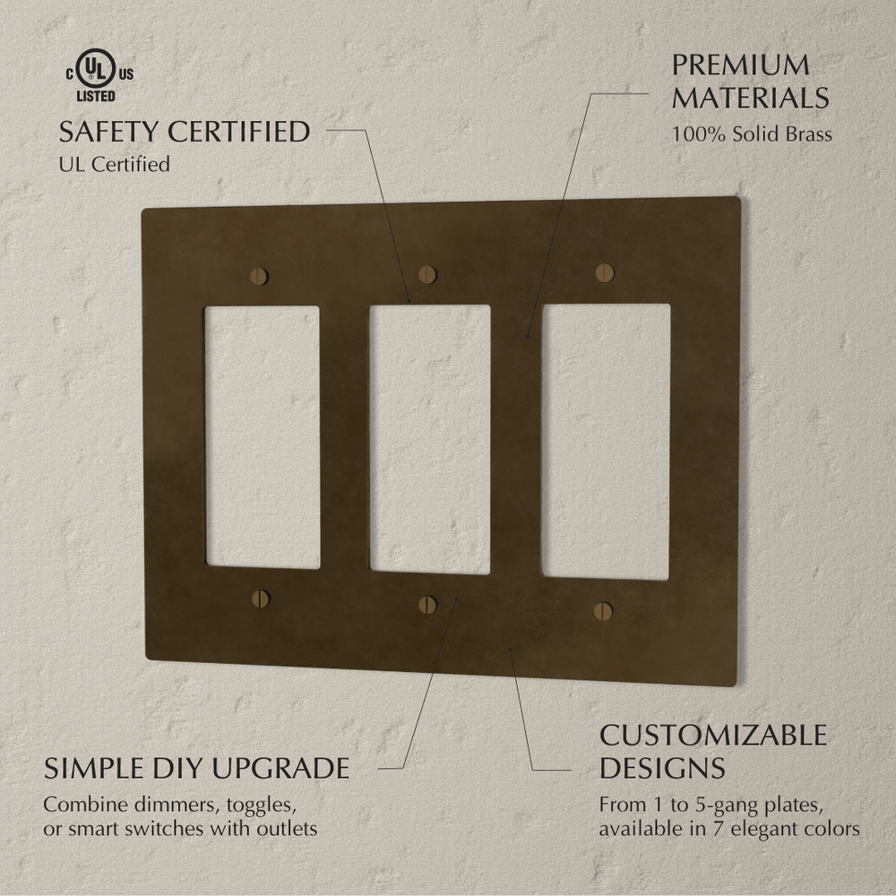 Elevate your space with a vintage brass plate that seamlessly integrates your electrical modules, offering effortless installation and lasting beauty in high-touch areas.