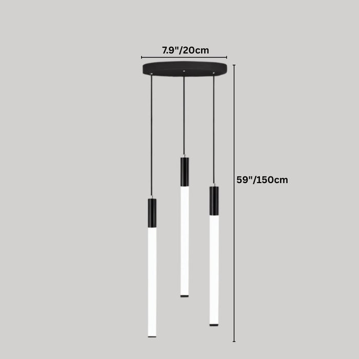 Slim cylindrical pendants create a clean, modern aesthetic for sophisticated interiors.