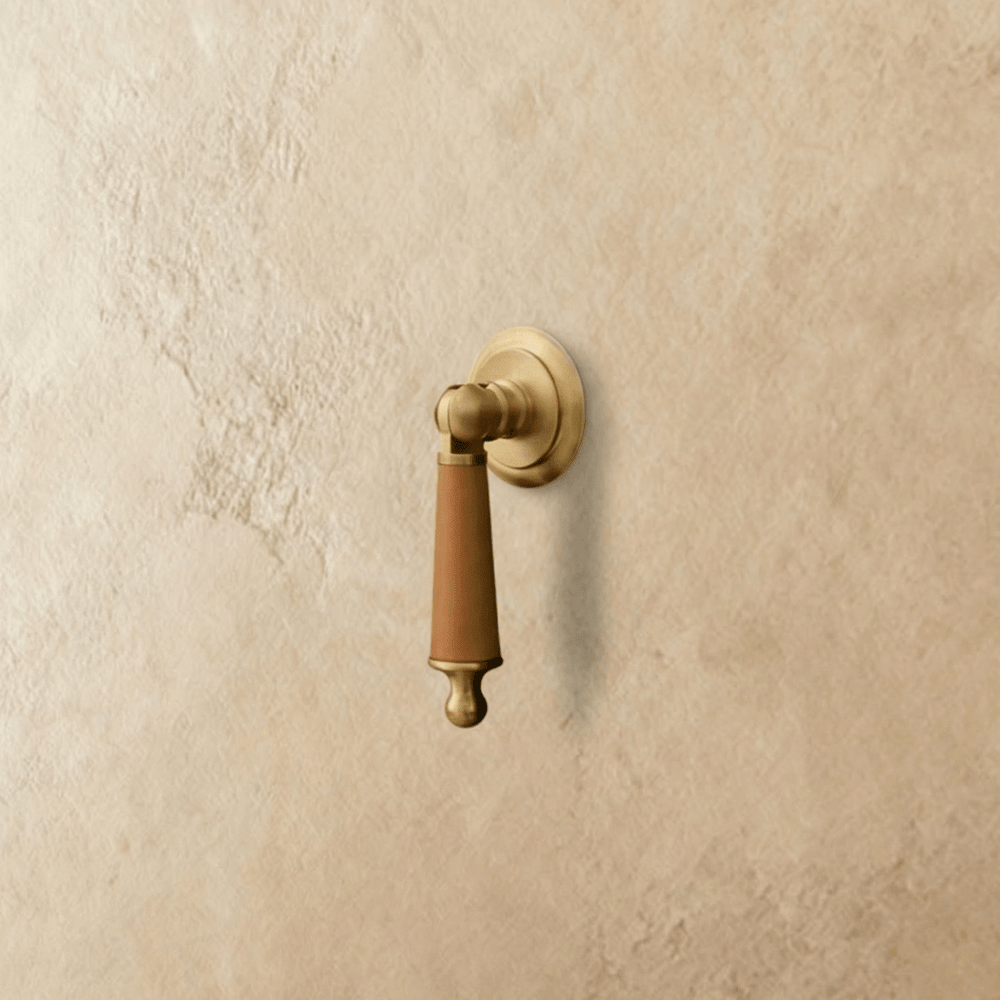 The finish on the Tugal Knob, made from premium cowhide and solid brass, is designed for durability and luxury, ensuring a long-lasting sophisticated look.