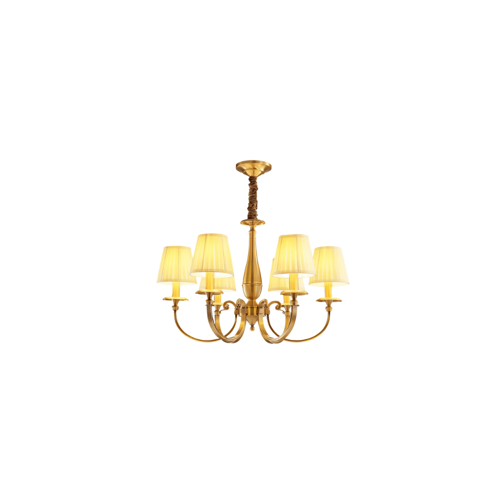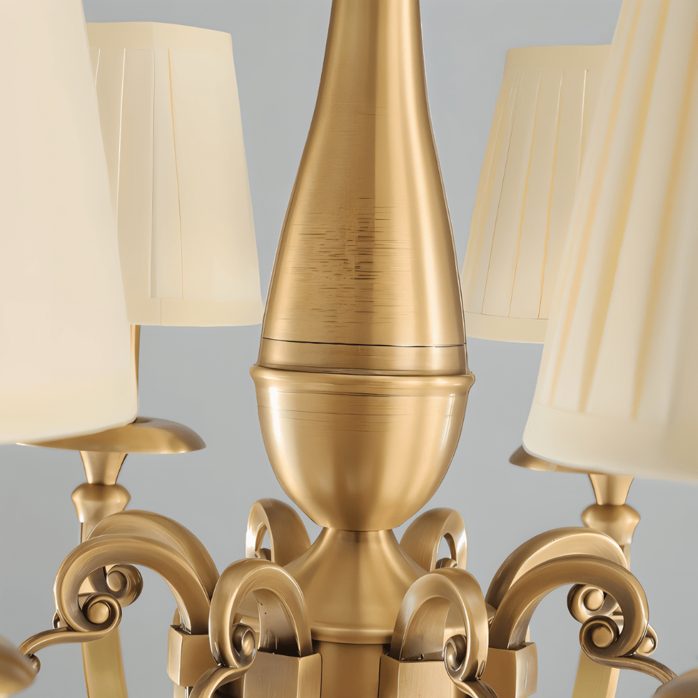 Crafted from premium copper with elegant cloth lampshades, the Uloma Chandelier showcases a timeless, sculptural design featuring gracefully arched arms and a polished central spindle. This light fixture exudes classic refinement, ideal for dining rooms, living rooms, or bedrooms with traditional or transitional interiors. Its warm, ambient glow enhances cozy atmospheres while acting as a focal décor piece. The Uloma Chandelier blends opulent form with soft function for upscale residential spaces.