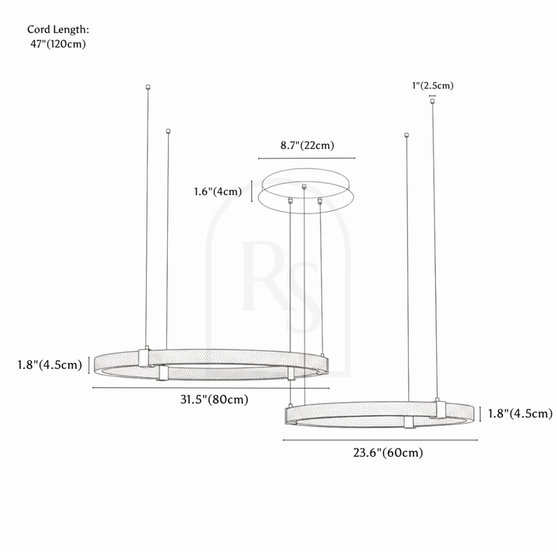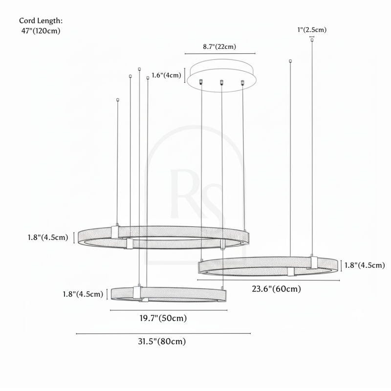 The Uriah Chandelier features a modern design with three concentric aluminum rings and perforated surfaces, paired with acrylic diffusers for a soft, ambient glow. Its adjustable suspension cables offer height flexibility, making it ideal for dining rooms, living areas, or commercial spaces. Perfectly suited for contemporary interiors, it blends industrial elegance with functionality.