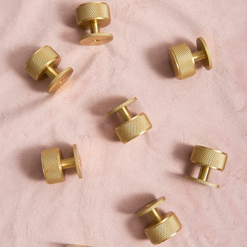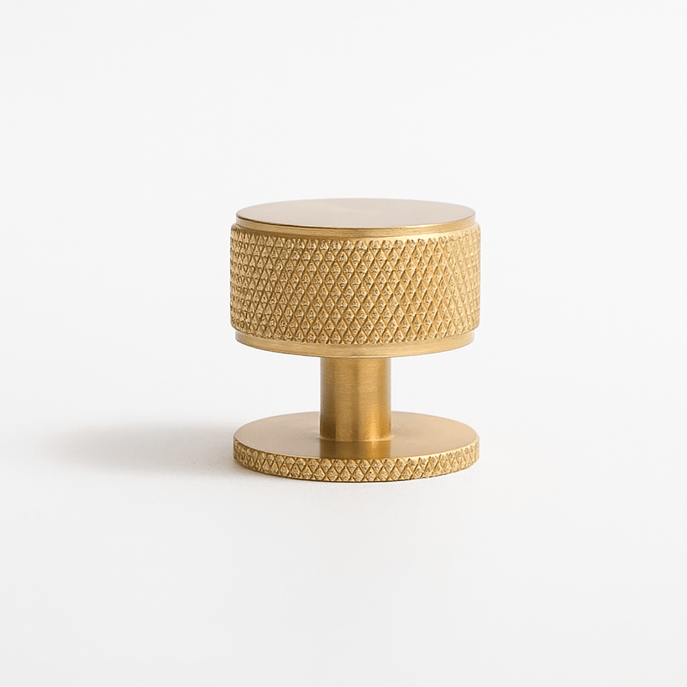 Knurled brass texture ensures a secure grip and modern style — perfect for kitchen cupboards, drawers, and wardrobes. Durable construction maintains elegance over time.