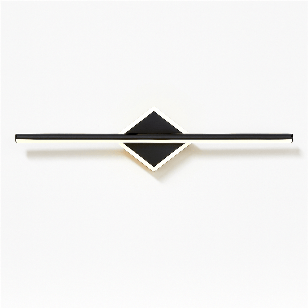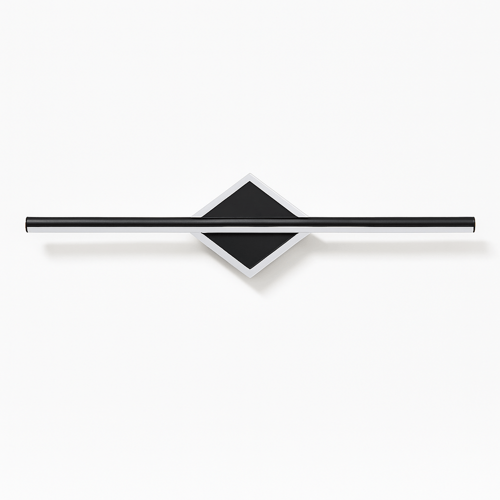 The Velnyra Wall Lamp features a minimalist geometric design with a diamond-shaped acrylic base and an aluminum frame that extends horizontally, creating a striking modern aesthetic. Perfect for bathroom vanity setups, it provides focused illumination while serving as a design statement. Available in gold and black finishes, it comes in three sizes, offering versatile options for various mirror dimensions. The combination of aluminum and acrylic ensures durability and a sleek look.