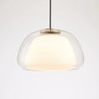 A sleek, modern pendant light with elegant glass and cream accents, perfect for contemporary spaces.