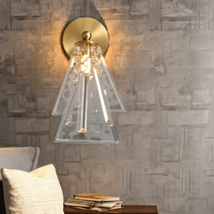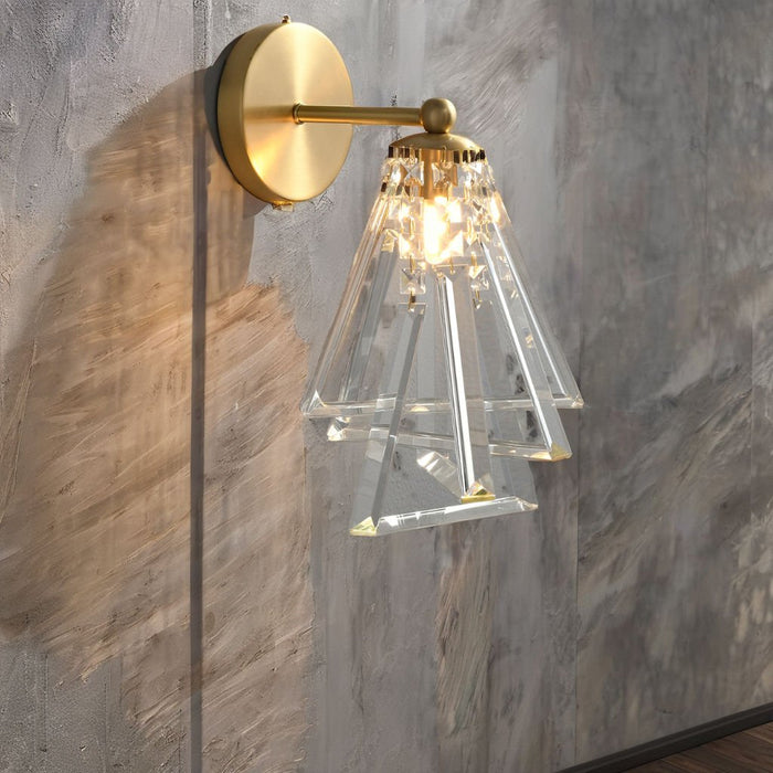 The Zapto Wall Lamp is a striking light fixture crafted from premium copper with a crystal lampshade that radiates luxury and elegance. Its geometric, tiered crystal design creates a dynamic play of light and shadow, perfect for elevating contemporary interiors. This light fixture’s warm metallic finish blends seamlessly with modern or upscale classic decor. Ideal for installation in living rooms, hallways, or sophisticated hospitality spaces, it serves as both illumination and statement art.