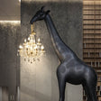 The Zarrafa Floor Lamp is an exceptional choice for those seeking to infuse their living spaces with a blend of whimsy and opulence. Expertly crafted in the form of a giraffe, this floor lamp not only serves as a functional lighting fixture but also doubles as a striking art piece. The lamp features a giraffe base, available in both small and large sizes, and offers color options in elegant white or bold black. The chandelier, held gracefully in the giraffe's mouth, is constructed from high-quality iron with a luxurious gold finish and adorned with crystals, enhancing its sophisticated appeal. This lamp is equipped with durable LED lighting, promising up to 50,000 hours of illumination. Its unique design and premium materials make the Zarrafa Floor Lamp a perfect statement piece for living rooms, foyers, or exhibition halls, effortlessly combining sleek modernity with lush, distinctive style. Whether lit or unlit, the lamp’s detailed craftsmanship and soft, warm light create an inviting and luxurious atmosphere in any setting.